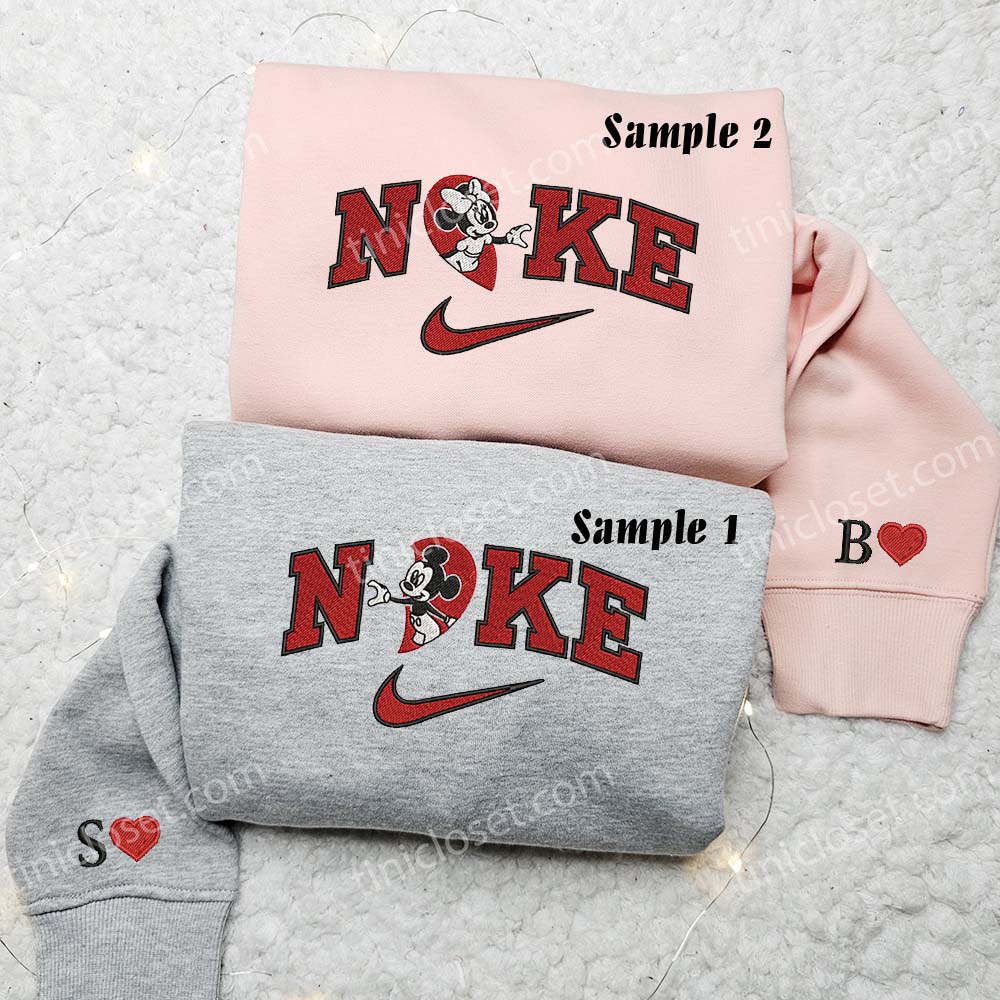 Mickey and Minnie Heart Embroidered Shirt, Disney Characters Embroidered Sweatshirt, Couple Embroidered Hoodie