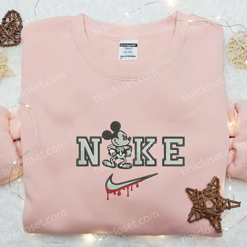 Mickey In Skeleton Costume x Nike Embroidered Shirt, Disney Characters Embroidered Hoodie, Halloween Embroidered Shirt