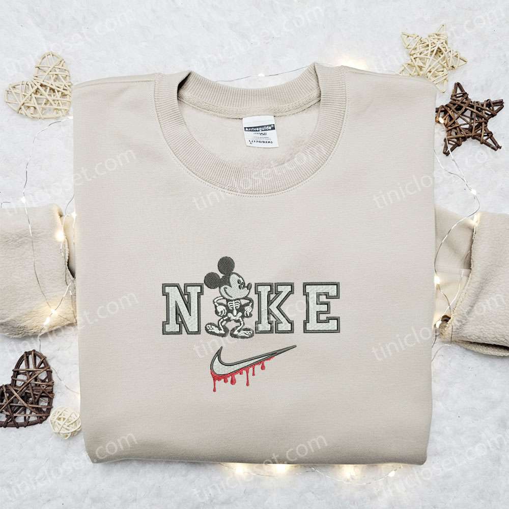 Mickey Mouse Skeleton x Nike Embroidered Sweatshirt, Walt Disney Characters Embroidered Shirt, Best Halloween Gift Ideas for Family