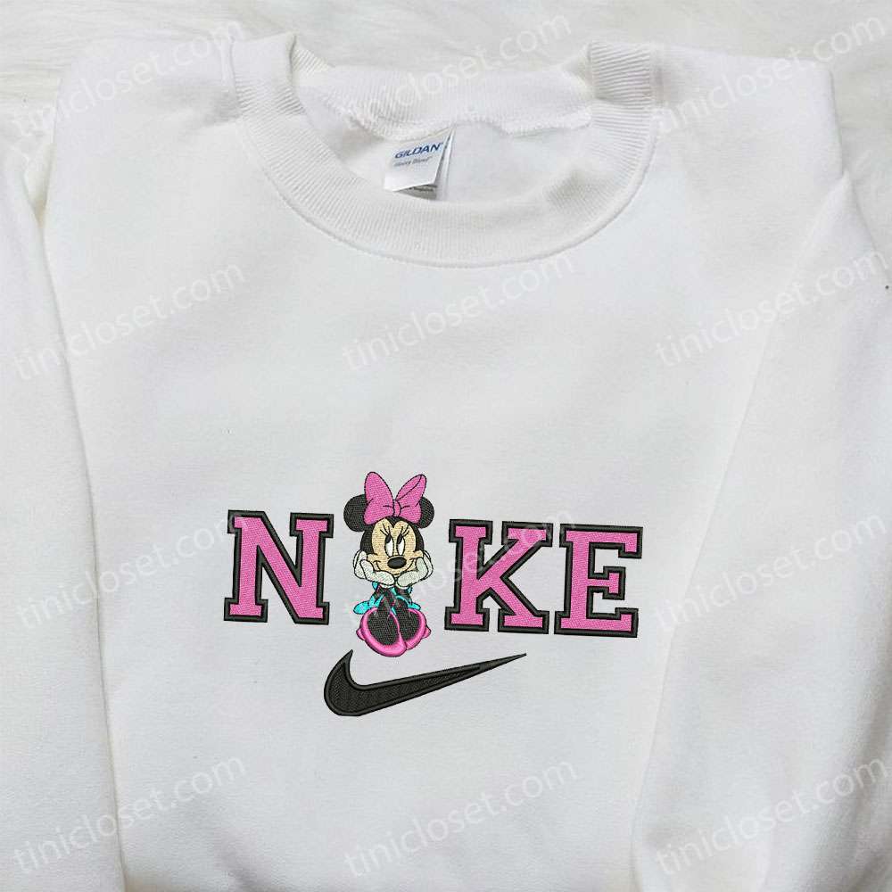 Minnie Mouse Sitting x Nike Embroidered Shirt, Disney Characters Embroidered Hoodie, Nike Inspired Embroidered Sweatshirt