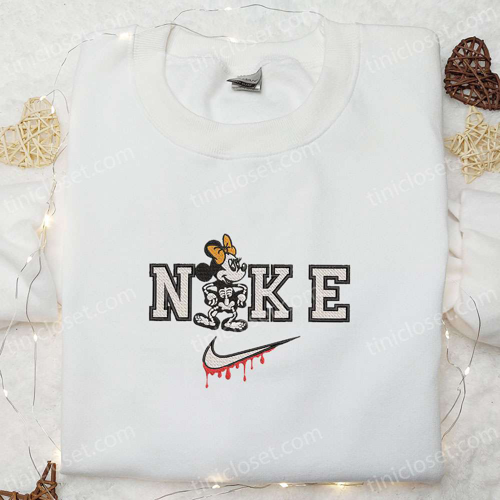 Minnie Mouse Skeleton x Nike Embroidered Hoodie, Nike Inspired Embroidered Shirt, Best Halloween Gift Ideas