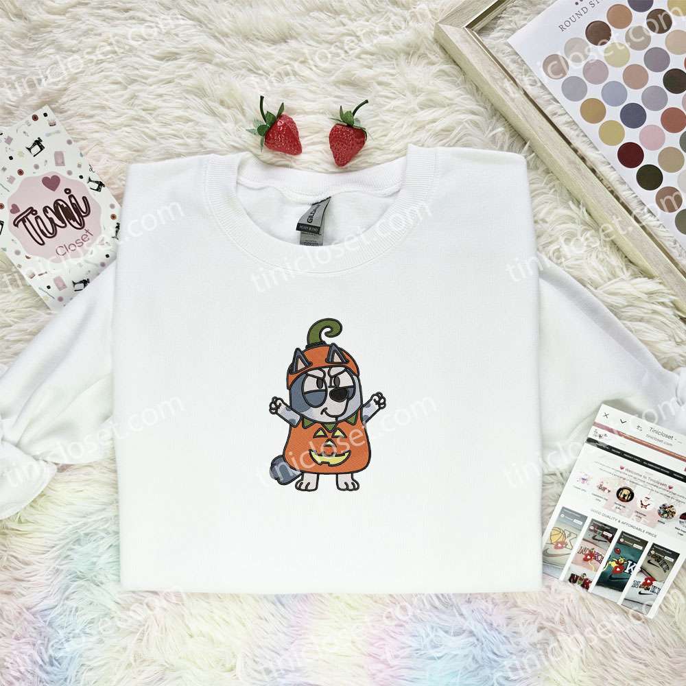 Muffin Pumpkin Embroidered Shirt, Bluey Cartoon Embroidered Hoodie, Best Halloween Gift