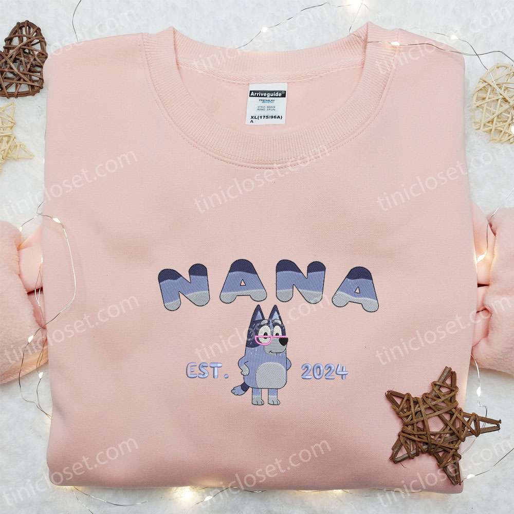Nana Chris Heeler Embroidered Shirt, Bluey Cartoon Embroidered Hoodie, Best Mother? Day Gift Idea