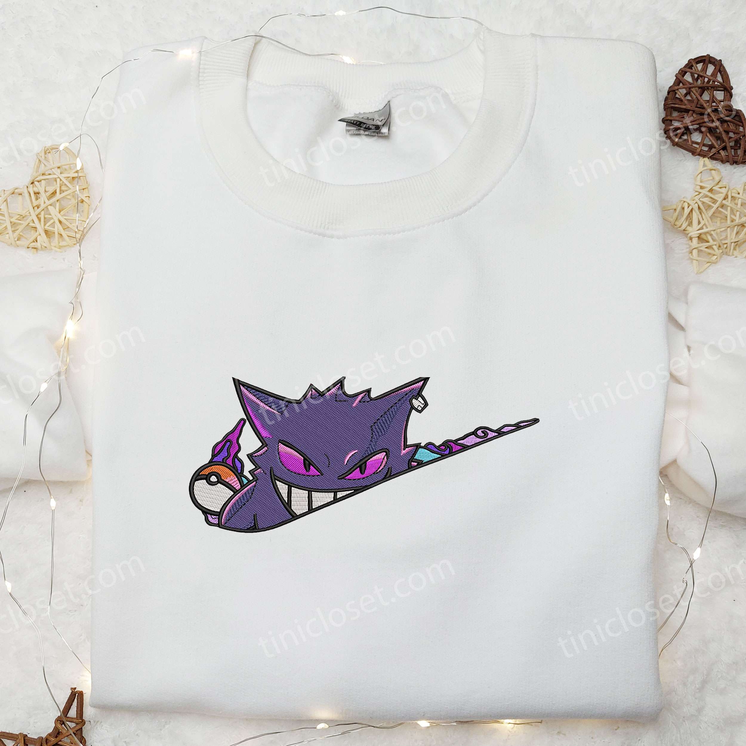 Nike Gengar Embroidered Sweatshirt, Pokemon Embroidered Hoodie, Best Gifts for Anime Fans