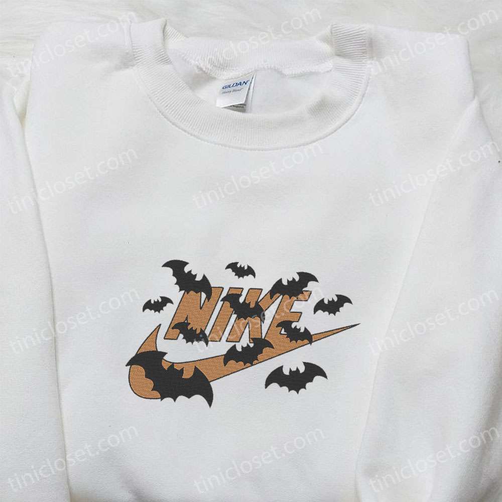 Nike Logo Halloween Bats Embroidered Shirt, Halloween Embroidered Hoodie, Nike Inspired Embroidered Sweatshirt