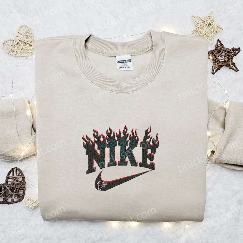Nike x Atlanta Falcons Flame Embroidered Sweatshirt, NFL Sports Embroidered Sweatshirt, Nike Inspired Embroidered Sweatshirt