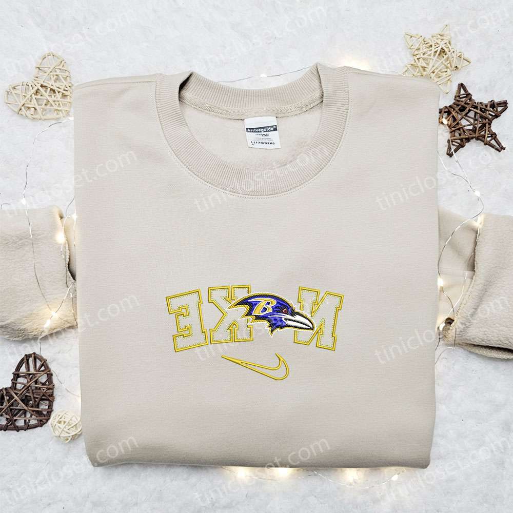 Nike x Baltimore Ravens Embroidered Shirt, NFL Sports Embroidered Shirt, Nike Inspired Embroidered Shirt