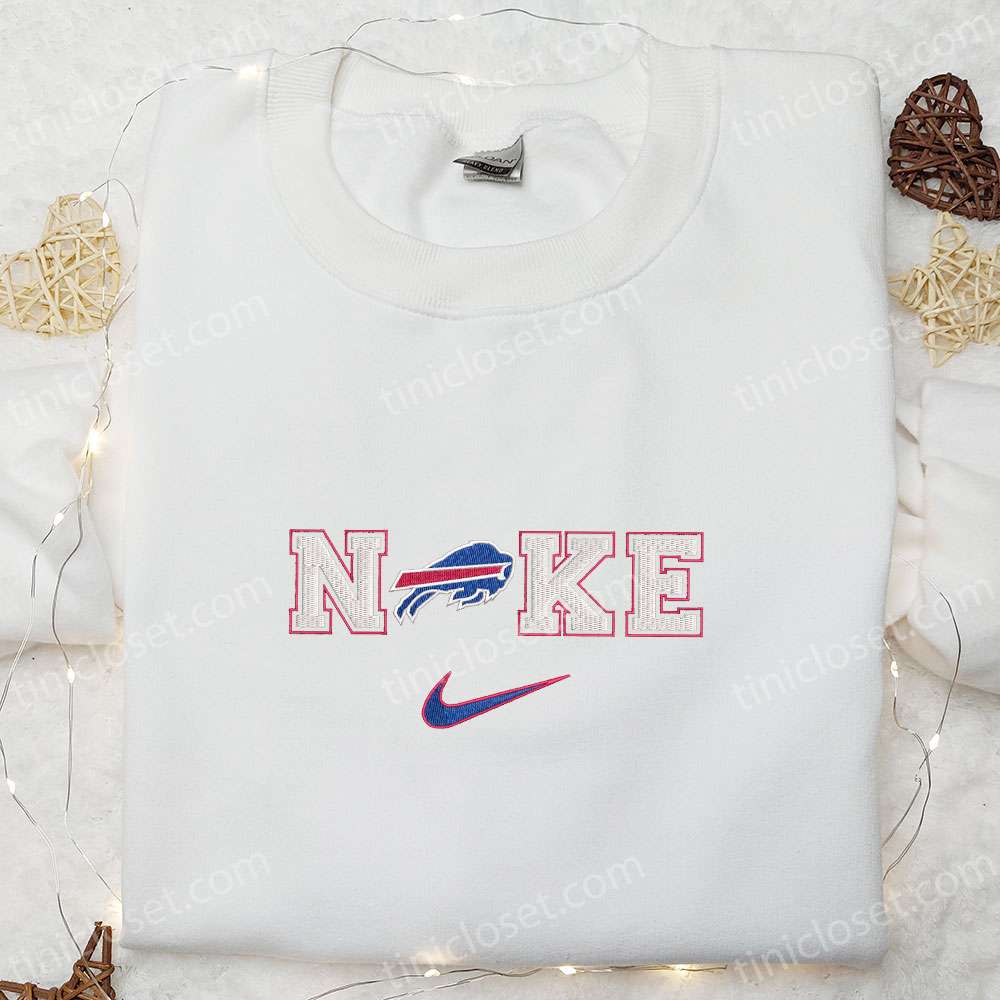 Nike x Buffalo Bills Logo Embroidered T-shirt, NFL Sports Embroidered T-shirt, Nike Inspired Embroidered T-shirt