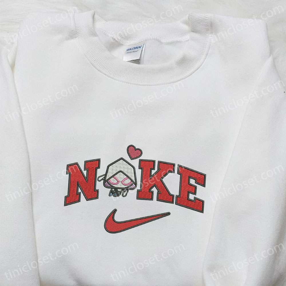 Nike x Chibi Gwen Heart Movie Embroidered Sweatshirt, Marvel Universe Embroidered Hoodie, Custom Nike Embroidered T-shirt