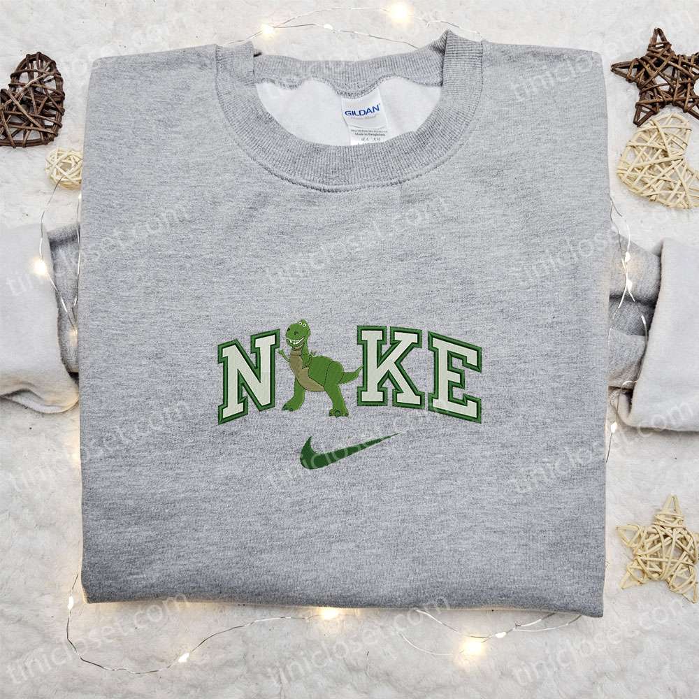 Nike x Dino Green Embroidered Sweatshirt, Custom Nike Embroidered Hoodie, Cute Embroidered T-shirt