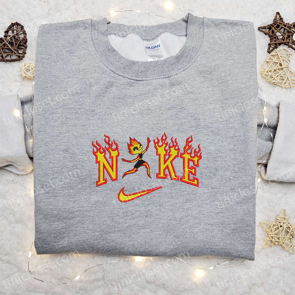 Nike x Ember Lumen Embroidered T-shirt, Elemental Disney Embroidered T-shirt, Nike Inspired Embroidered T-shirt