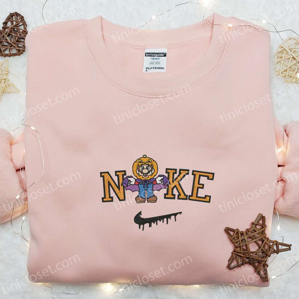 Nike x Halloween Pumpkin Mario Embroidered Shirt, Game Characters Embroidered Shirt, Nike Inspired Embroidered Shirt