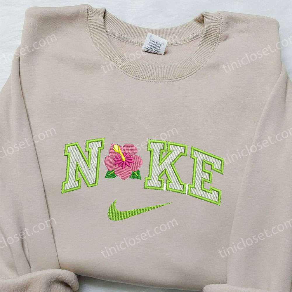 Nike x Hibiscus Flower Embroidered Shirt, Custom Nike Embroidered Shirt, Flowers Lover Embroidered Shirt