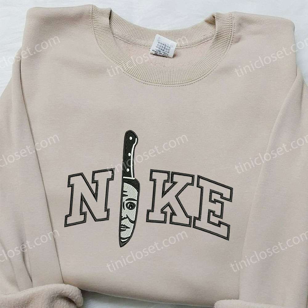 Nike x Knife Michael Myers Embroidered Shirt, Custom Nike Embroidered Shirt, Halloween Embroidered Shirt