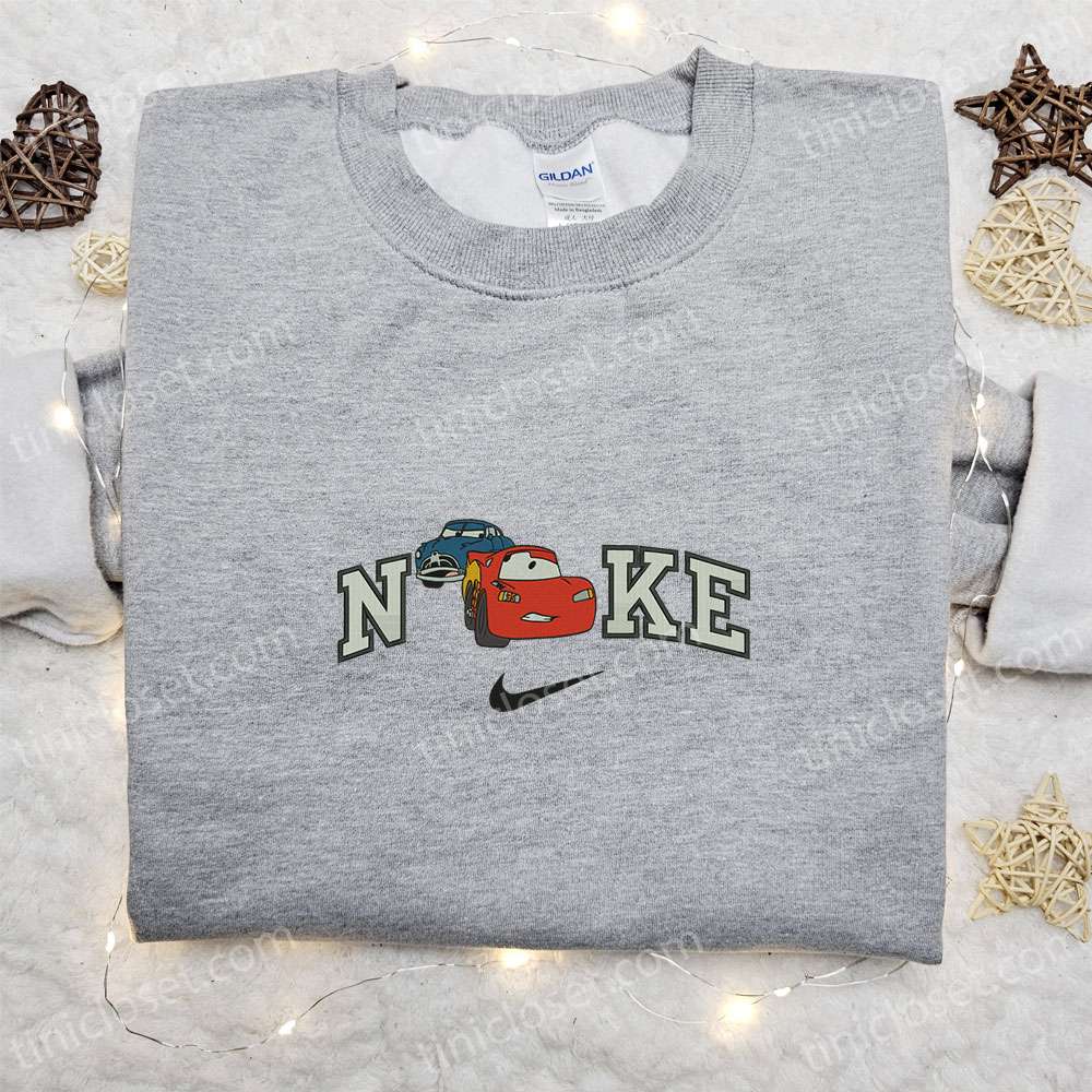Nike x Lightning McQueen and Doc Hudson Embroidered Sweatshirt, Disney Pixar Cars Embroidered Hoodie, Custom Nike Embroidered T-shirt