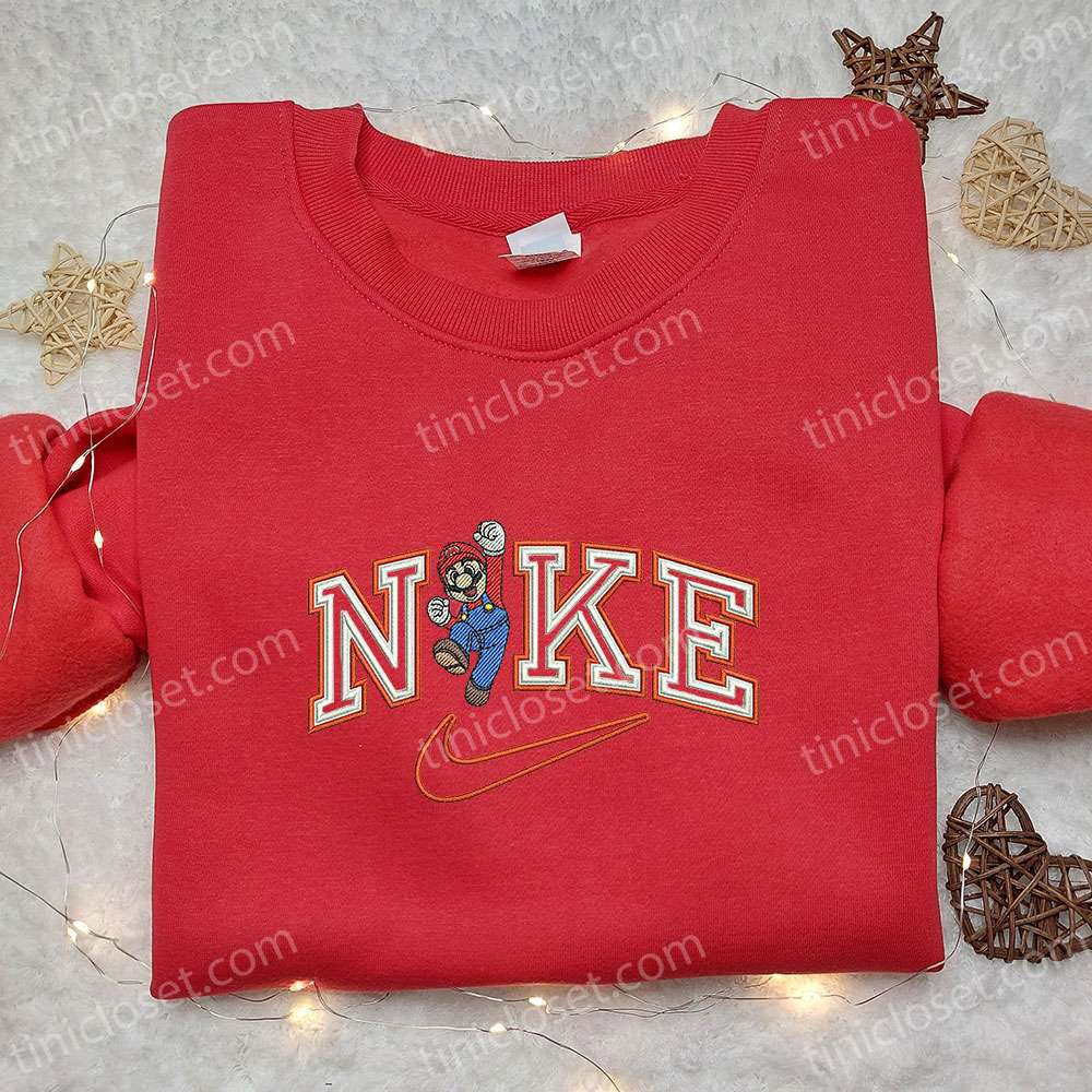 Nike x Mario Cartoon Embroidered Shirt, Super Mario Embroidered Hoodie, Custom Nike Embroidered T-shirt
