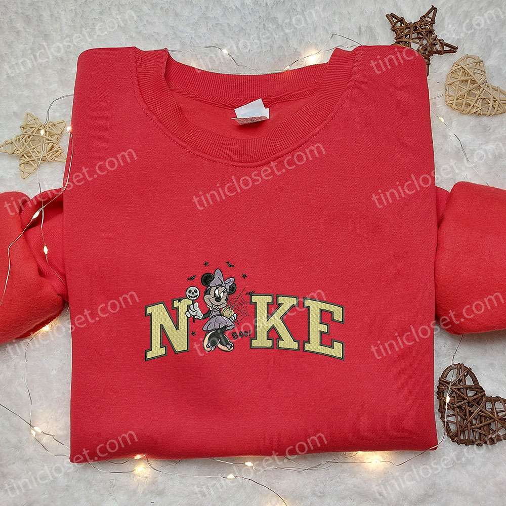 Nike x Minnie Halloween Embroidered Shirt, Disney Halloween Embroidered Hoodie, Cute Halloween Embroidered Sweatshirt