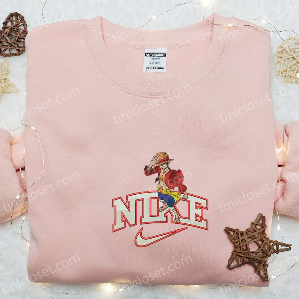 Nike x Monkey D. Luffy Anime Embroidered Sweatshirt, Nike Inspired Embroidered T-shirt, Best Birthday Gift Ideas
