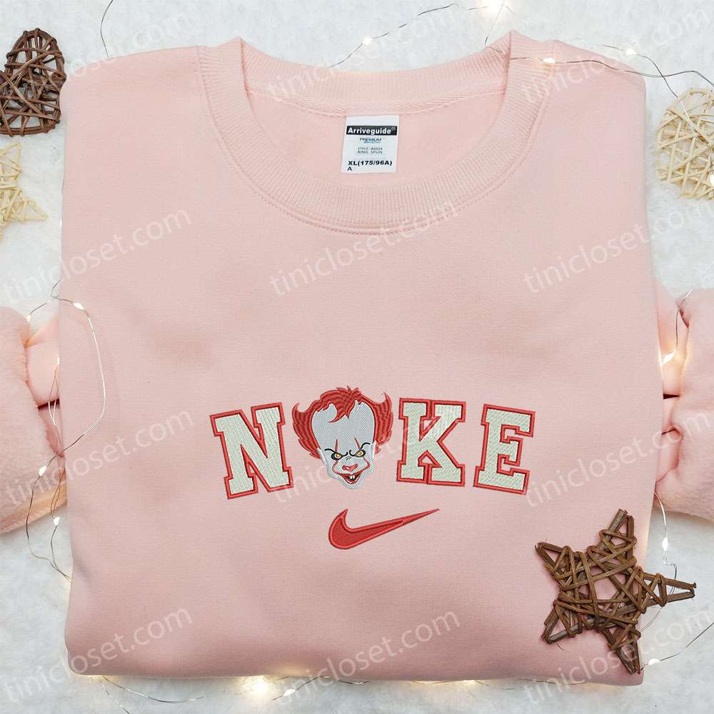 Nike x Pennywise Clown Embroidered Shirt, IT Terrifying Clown Embroidered Shirt, Spooky Halloween Embroidered Shirt