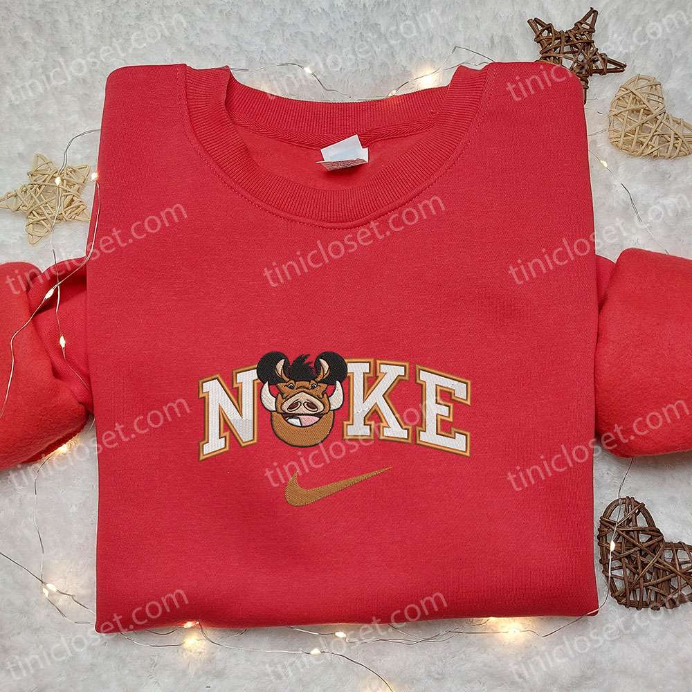 Nike x Pumba Mickey Embroidered Shirt, Disney Characters Embroidered T-shirt, Nike Inspired Embroidered Sweatshirt