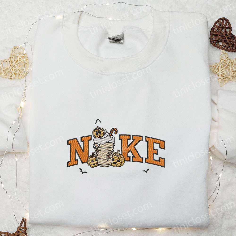 Nike x Pumpkin Halloween Latte Embroidered Shirt, Cute Halloween Embroidered Shirt, Nike Inspired Embroidered Shirt