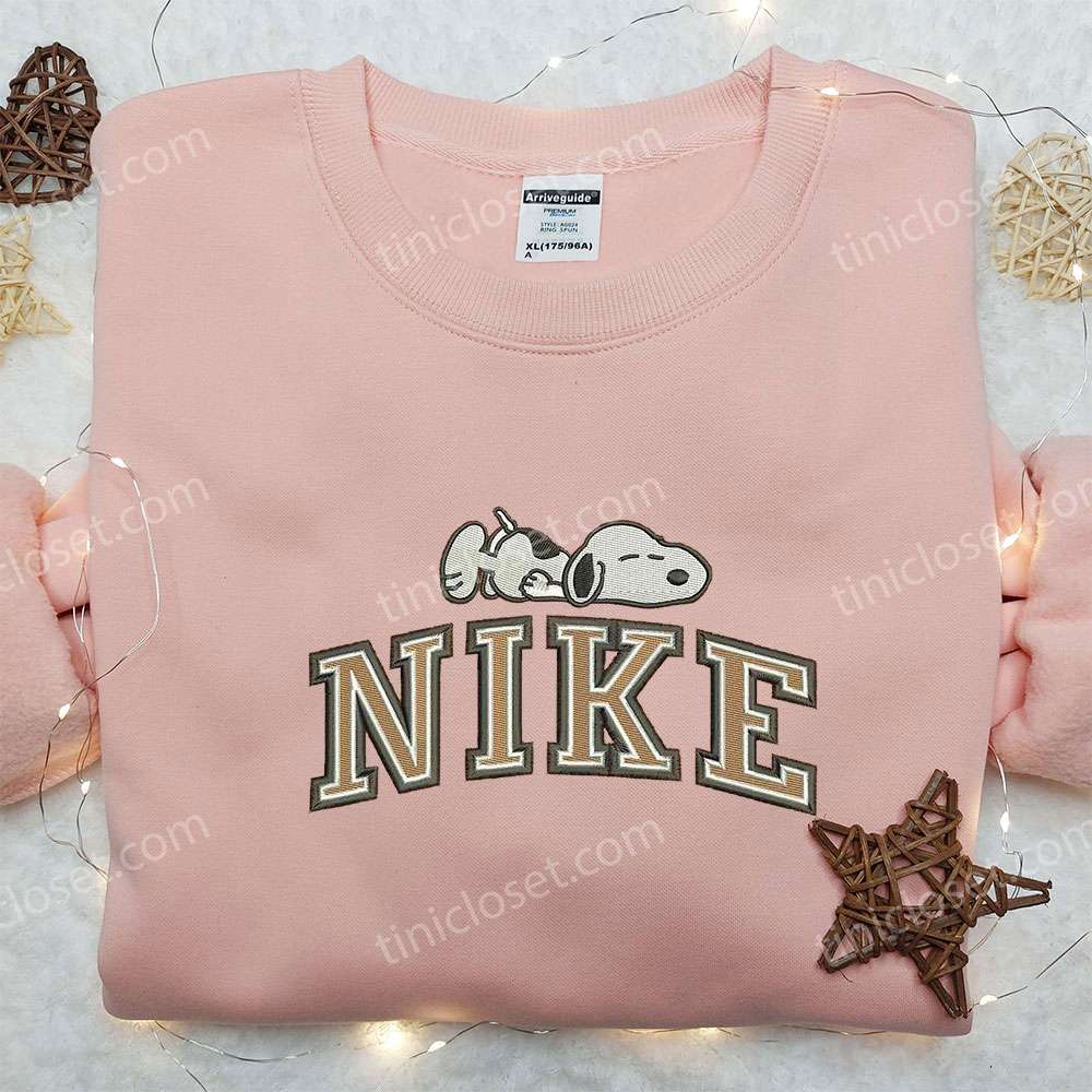 Nike x Snoopy Sleep Embroidered Sweatshirt, Peanuts Cartoon Embroidered Shirt, Nike Inspired Embroidered Shirt