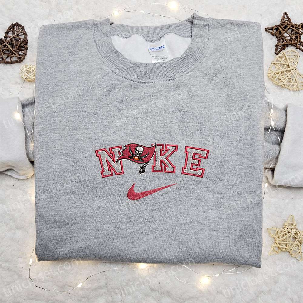 Nike x Tampa Bay NFL Logo Embroidered T-shirt, NFL Sports Embroidered T-shirt, Nike Inspired Embroidered T-shirt