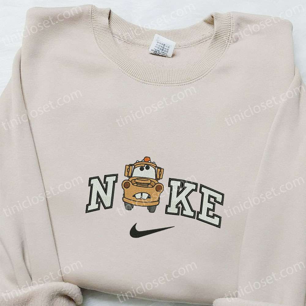 Nike x Tow Mater Pixar Cars Embroidered Sweatshirt, Disney Pixar Cars Embroidered Hoodie, Custom Nike Embroidered T-shirt