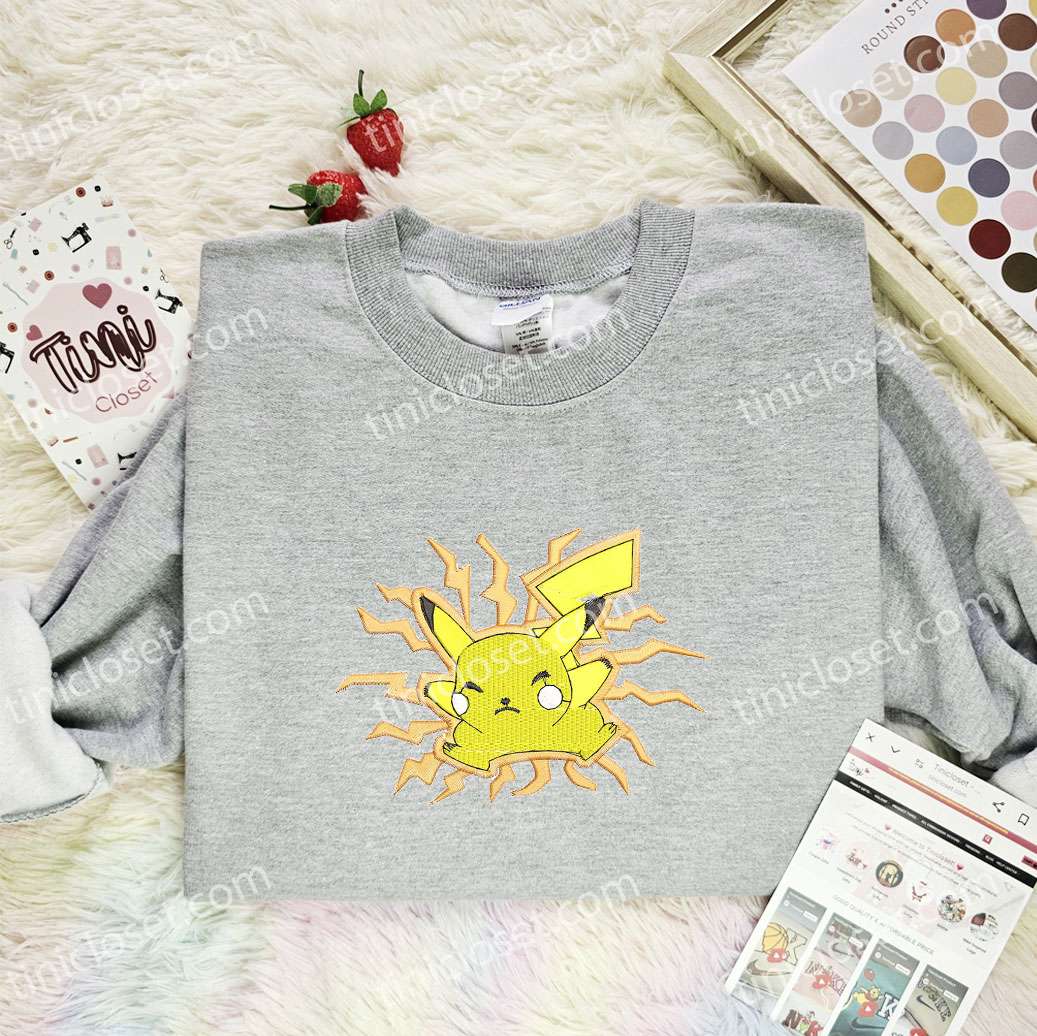 Pikachu Charge Pokemon Anime Embroidered Shirt
