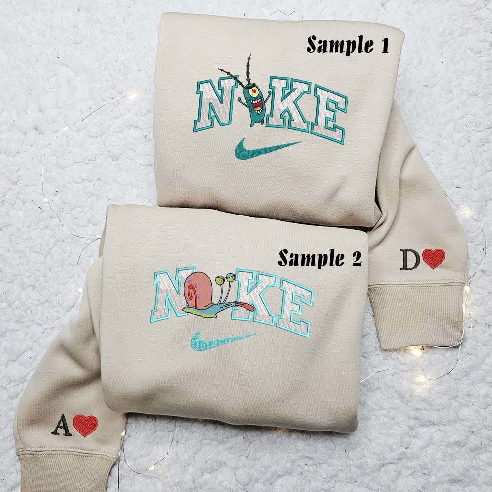 Plankton and Gary Spongebob Squarepants Cartoon Embroidered Couples Shirts