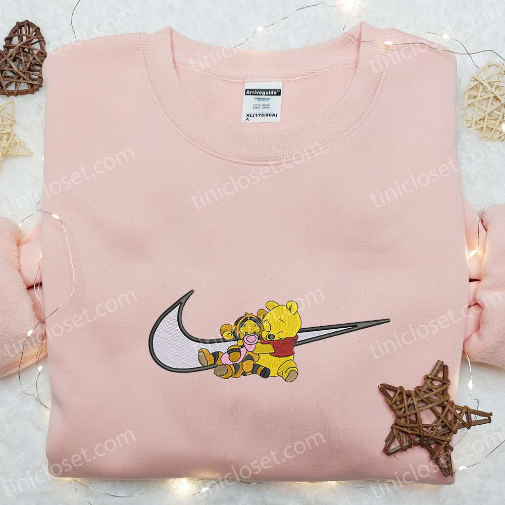 Pooh and Tigger x Swoosh Cartoon Embroidered Shirt, Disney Characters Embroidered Hoodie, Best Birthday Gift Ideas