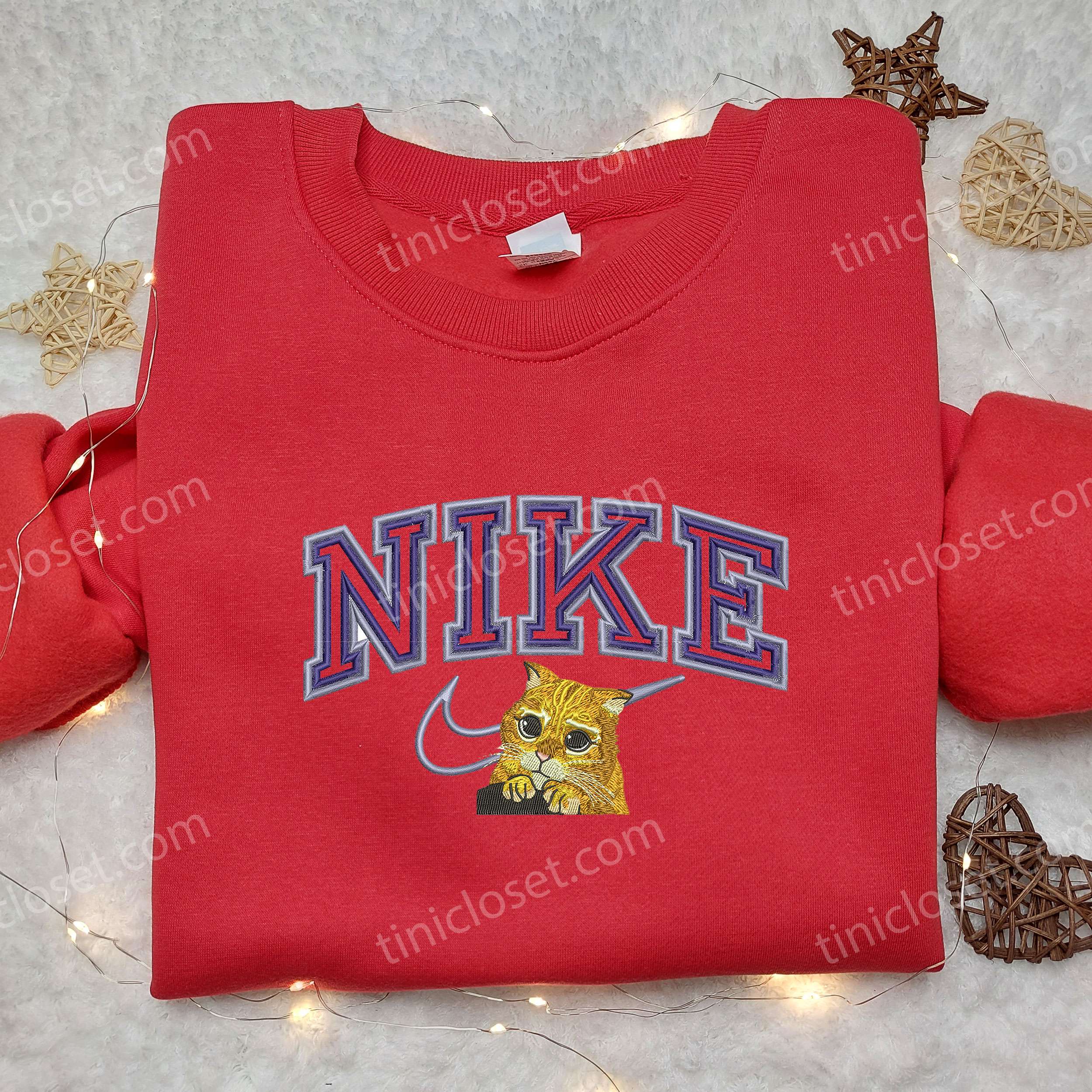 Puss In Boots x Nike Embroidered Shirt, Puss In Boots Embroidered Shirt, Custom Nike Embroidered Shirt
