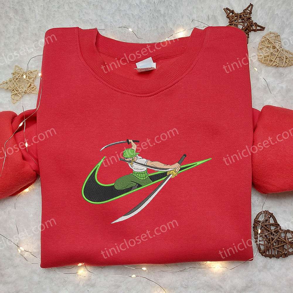 Roronoa Zoro x Nike Swoosh Embroidered Hoodie, One Piece Embroidered Shirt, Nike Inspired Embroidered Shirt