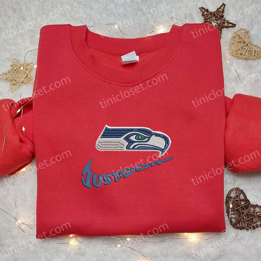 Seattle Seahawks Just Do It x Nike Swoosh Embroidered Shirt, NFL Sports Embroidered Hoodie, Best Gift Idea
