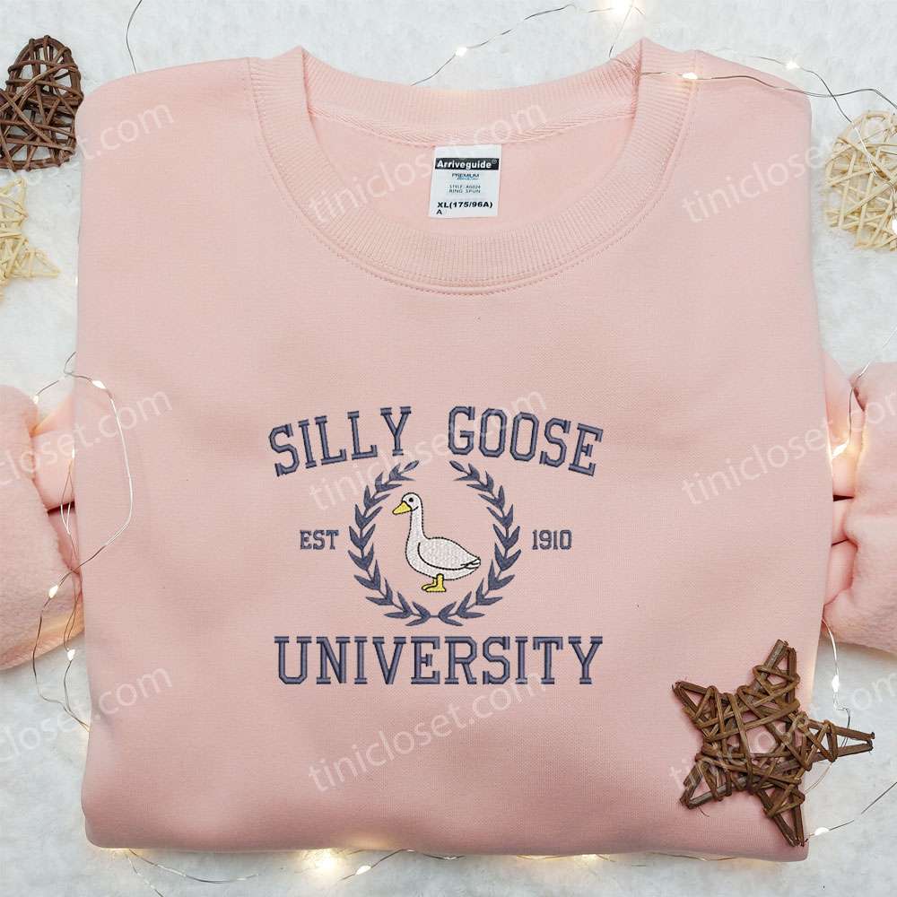Silly Goose University Est. 1910 Embroidered Shirt, Animal Embroidered Shirt, Best Graduation Gifts