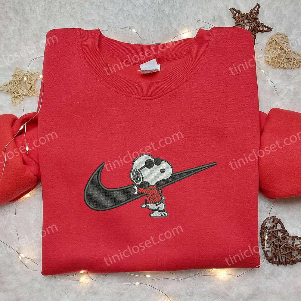 Snoopy x Nike Swoosh Embroidered Sweatshirt, Peanuts Cartoon Embroidered Shirt, Nike Inspired Embroidered Shirt