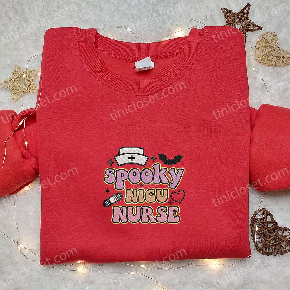 Spooky Nicu Nurse Embroidered Hoodie, Halloween Embroidered Hoodie, Best Halloween Gift Ideas For Family