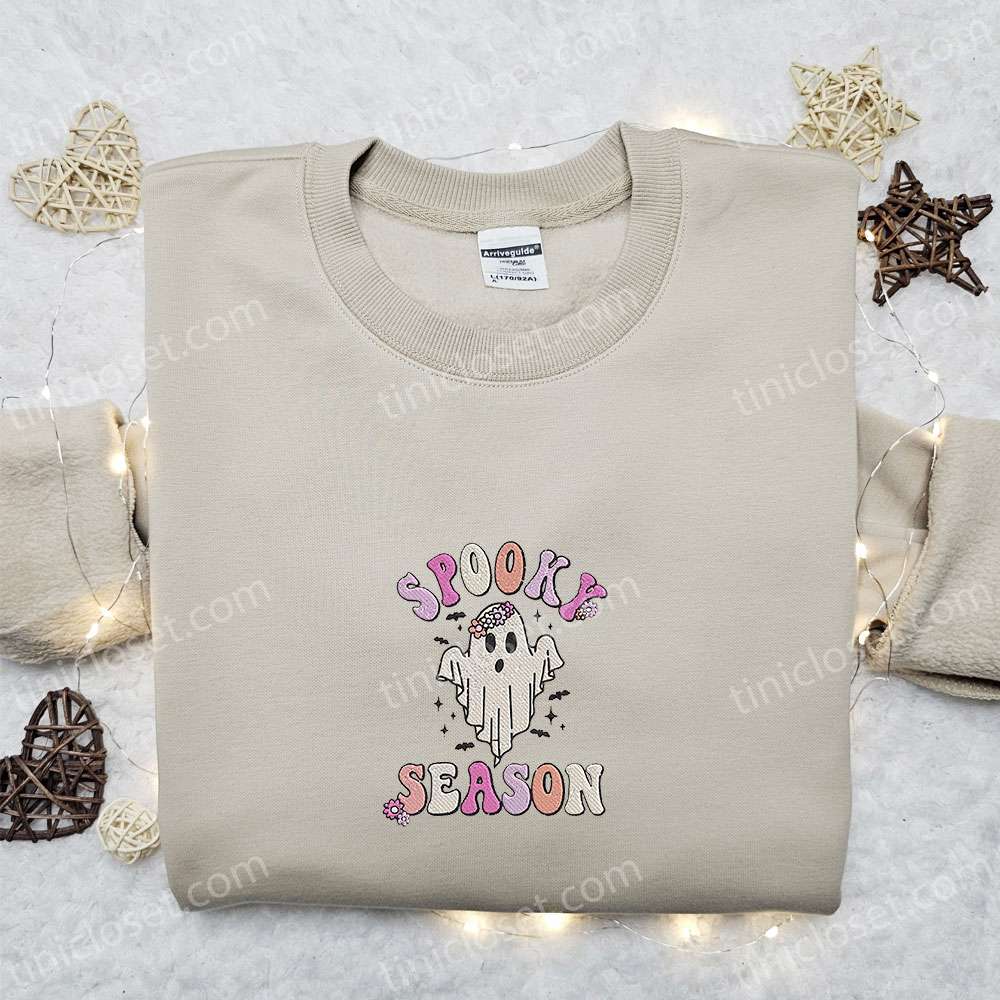 Spooky Season Ghost Embroidered Shirt, Vintage Halloween Embroidered Hoodie, Best Halloween Gift Ideas