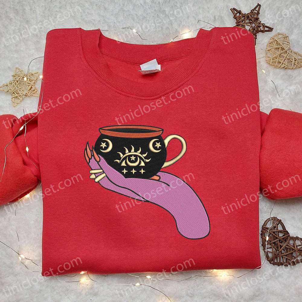 Spooky Witch Hand Embroidered Hoodie, Custom Embroidered Shirt, Best Gift Ideas For Family