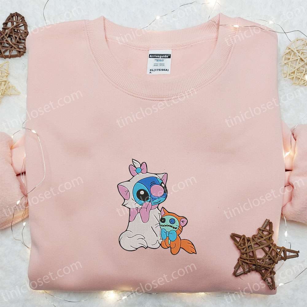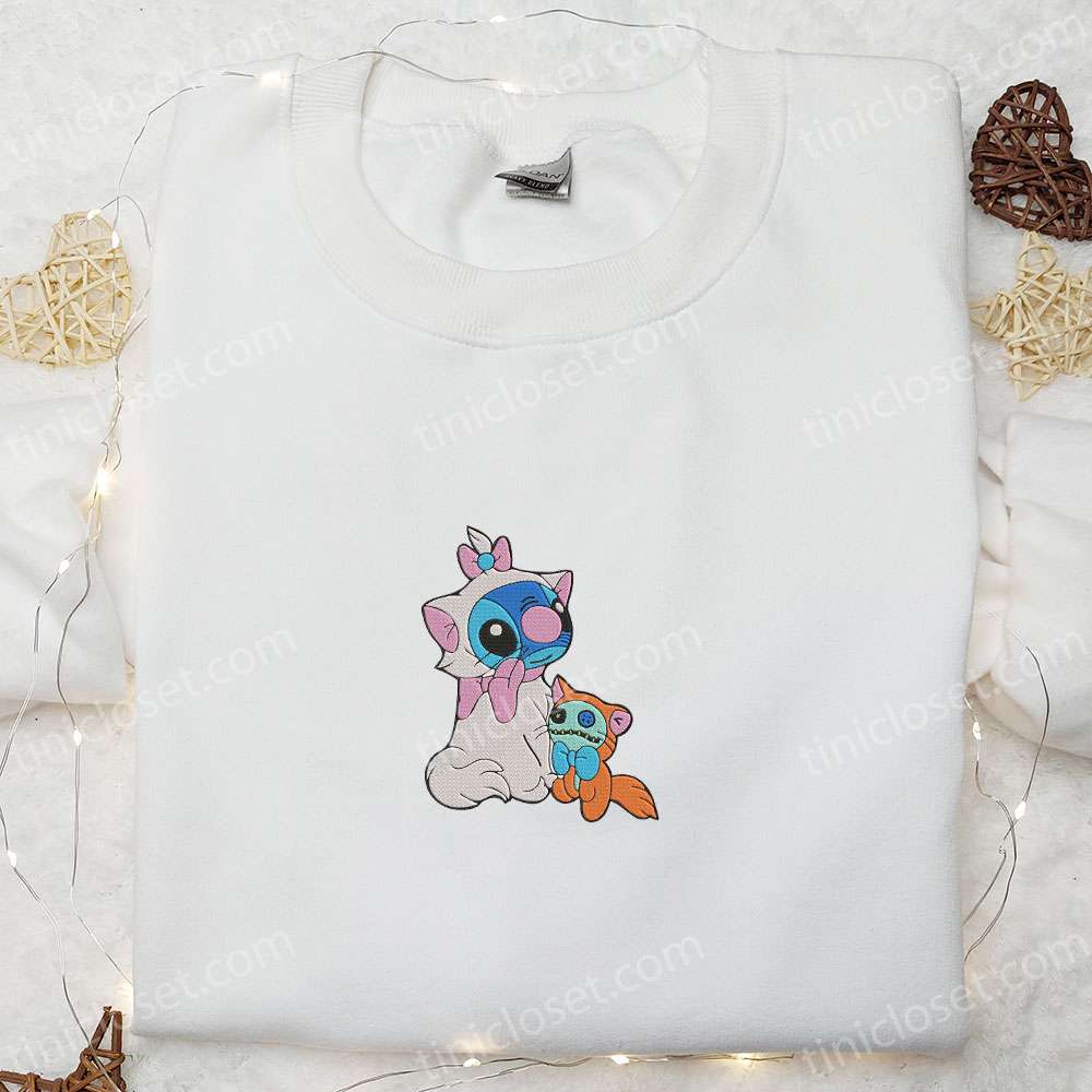 Stitch Aristocat Embroidered Shirt, Disney Characters Embroidered Hoodie, Best Halloween Gift Ideas