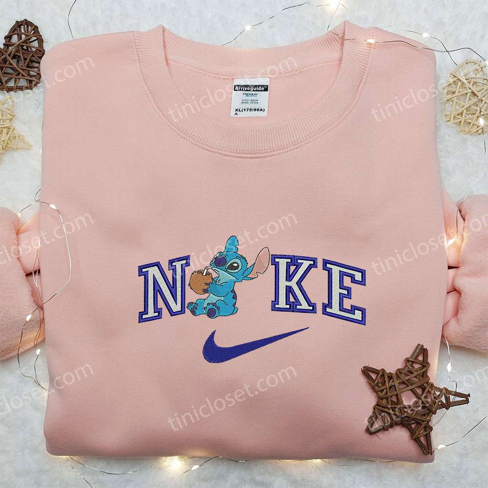 Stitch Coconut x Nike Embroidered Sweatshirt, Lilo and Stitch Cartoon Embroidered Shirt, Nike Inspired Embroidered Shirt
