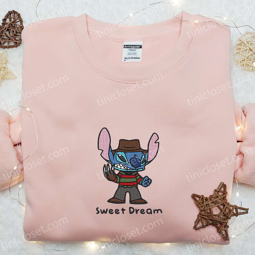 Stitch Freddy Krueger Embroidered Sweatshirt, Disney Horror Movie Embroidered Shirt, Best Gift Ideas