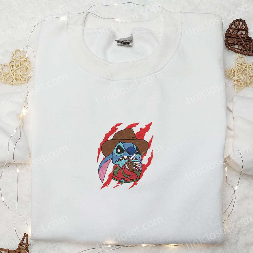 Stitch Freddy Kruger Embroidered Shirt, Disney Characters Embroidered Hoodie, Best Halloween Gift Ideas