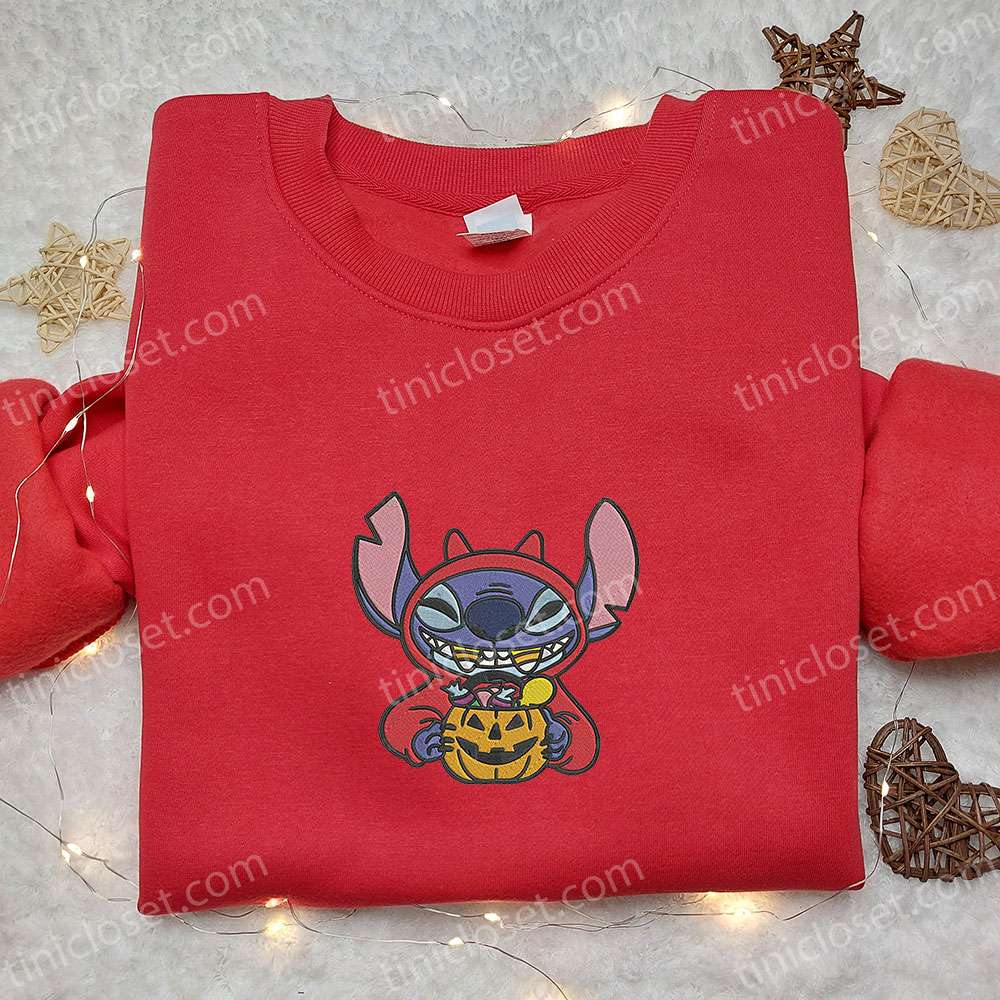Stitch Halloween Candy Embroidered Shirt, Disney Characters Embroidered Hoodie, Best Halloween Gift Ideas