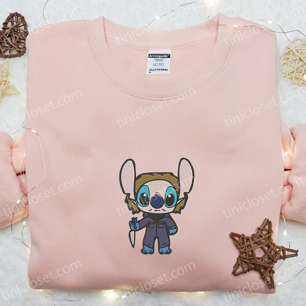 Stitch Michael Myers Embroidered Shirt, Disney Characters Embroidered Hoodie, Best Halloween Gift Ideas