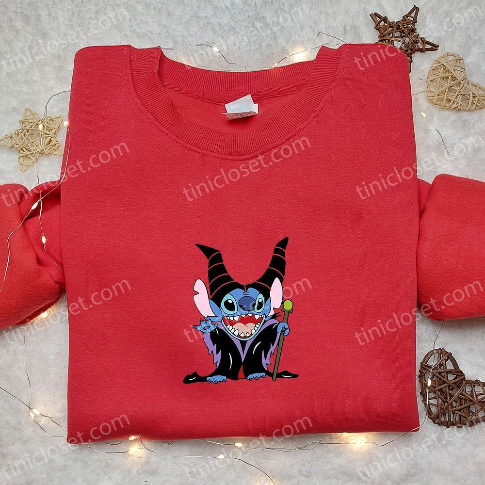 Stitch Witch Maleficent Embroidered T-shirt, Lilo And Stitch Disney Embroidered T-shirt, Best Gift Ideas