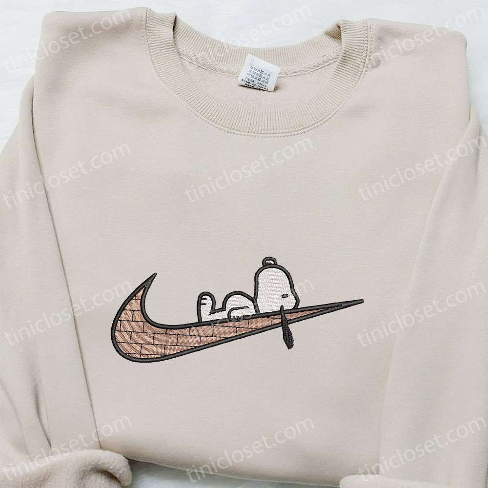 Swoosh x Snoopy Embroidered Shirt, Disney Characters Embroidered Hoodie, Custom Nike Embroidered T-shirt