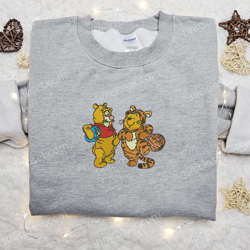 Winnie The Pooh And Tigger Embroidered Sweatshirt, Disney Cartoon Embroidered Hoodie, Halloween Embroidered Shirt