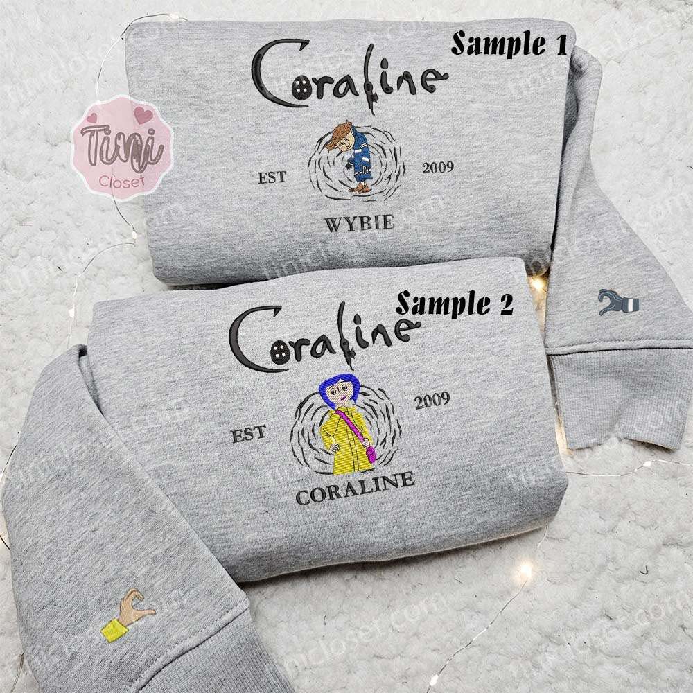 Wybie And Coraline Est 2009 Halloween Embroidered Couples Shirts