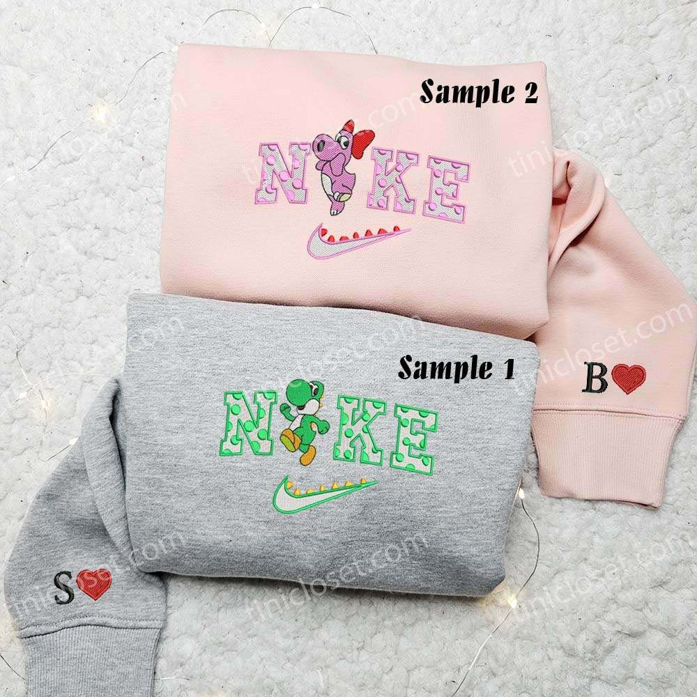 Yoshi and Birdo Dinosaur Embroidered Couples Shirts